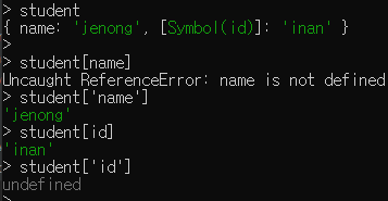 - symbol: 심벌, ES6에서 추가됨, 고유하고 변경할 수 없는값