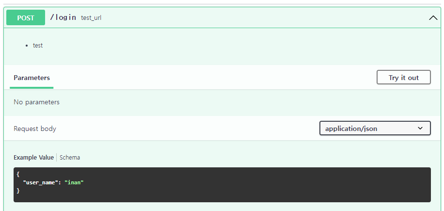 - (1) API 명세서 Request body, application/json 데이터 확인