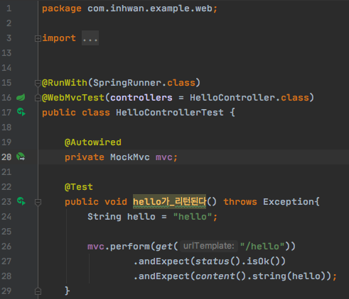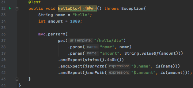 - Controller에서 hello를 리턴하기 때문에 이 값이 맞는지 검증