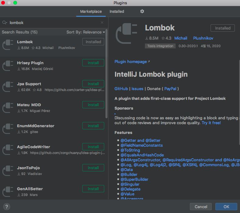자바를 개발할 때 자주 사용하는 코드 Getter, Setter, 기본생성자, toString 등을 어노테이션으로 자동 생성