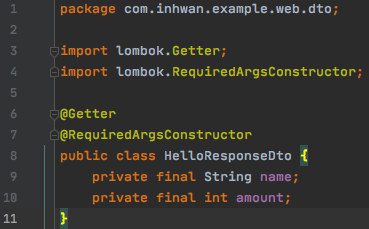 - @Getter: 선언된 모든 필드의 get 메소드를 생성